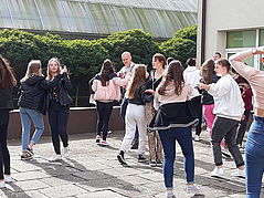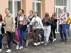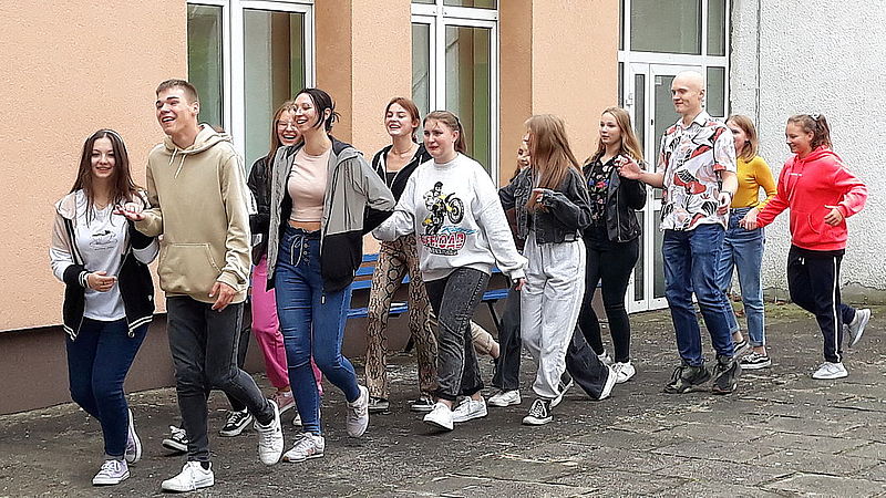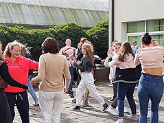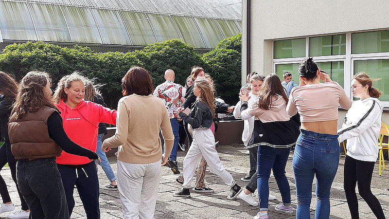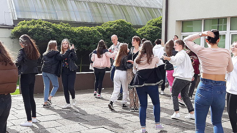 Po krótkim odpoczynku wszyscy znaleźliśmy się na szkolnym patio, bo tam – dla całej społeczności szkolnej - został zorganizowany grill. Kiełbaski bardzo smakowały, jednak najlepsza zabawa zaczęła się wtedy, gdy z głośników popłynęła muzyka. Tańcom, hulankom, korowodom nie było końca. Lepszej integracji – po czasie przymusowej izolacji – nie mogliśmy sobie wyobrazić! Ten dzień spędziliśmy naprawdę miło, w serdecznej atmosferze, która na pewno zacieśniła relacje koleżeńskie. Z tego miejsca, raz jeszcze, wszystkim Panom – tym dużym i trochę mniejszym – wysyłamy serdeczne uściski i życzymy wszystkiego dobrego.