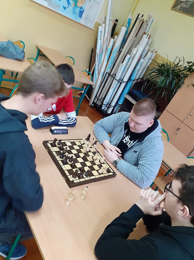 W dniu dzisiejszym w naszej szkole odbył się już III Szkolny Turniej Szachowy. Pomysłodawcą i głównym organizatorem jest uczeń IV klasy Adam Rękawiecki. W rywalizacji wzięła udział liczna grupa licealistów. I miejsce zajął uczeń pierwszej klasy Jakub Jóźwiak, drugie miejsce zajął Mateusz Grodzicki uczeń czwartej klasy, trzecie miejsce zajął uczeń drugiej klasy - Michał Żurawicz. Dziękujemy organizatorom i gratulujemy zwycięzcom.