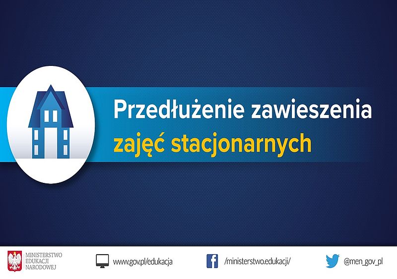 Zgodnie z Rozporządzeniem Ministra Edukacji i Nauki z dnia 18 marca zawieszone zostają zajęcia stacjonarne dla uczniów od 22 marca 2021 r. do 11 kwietnia 2021 r. Wszystkie zajęcia będą realizowane z wykorzystaniem metod i technik kształcenia na odległość na dotychczasowych zasadach, zgodnie z obowiązującym planem lekcji.