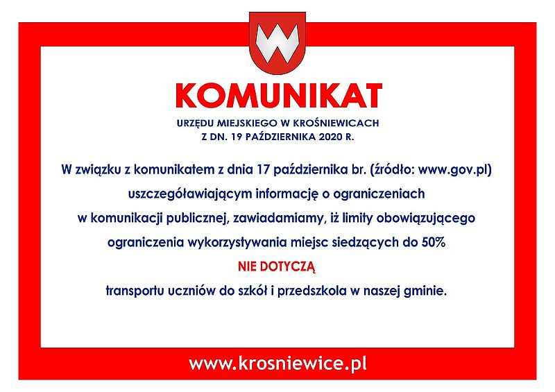 Komunikat Urzędu Miejskiego w Krośniewicach