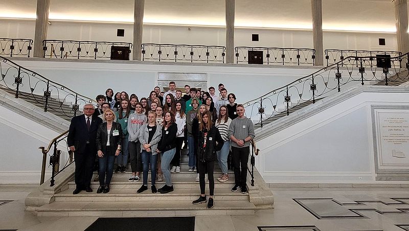 30 marca bieżącego roku w naszej szkole odbyła się wycieczka motywacyjna do Warszawy, w której udział wzięła liczna grupa uczniów. Naszą eskapadę rozpoczęliśmy od zwiedzania Muzeum Powstania Warszawskiego. Stanowi ono hołd wobec tych, którzy walczyli i ginęli za wolną Polskę. Niepowtarzalna i multimedialna ekspozycja przybliżyła nam powstańczą rzeczywistość. Kolejnym punktem programu było zwiedzanie Warszawy śladami bohaterów lektury "Kamienie na szaniec" oraz Cmentarza Wojskowego na Powązkach. Odwiedziliśmy groby Alka, Zośki oraz Rudego, na których zapaliliśmy znicze jako symbol pamięci wobec ich bohaterskich czynów w okupowanym kraju podczas II wojny światowej. Następnie udaliśmy się do Sejmu i Senatu, który zwiedziliśmy wraz z przewodnikiem. Warto dodać, że towarzyszył nam poseł ziemi kutnowskiej - Tadeusz Woźniak. Ostatnim punktem wycieczki była galeria Złote Tarasy, gdzie mogliśmy pozwolić sobie na chwilę odpoczynku oraz ciepły posiłek. Dzień upłynął nam w miłej atmosferze, a wyjazd okazał się świetną nagrodą dla młodzieży.